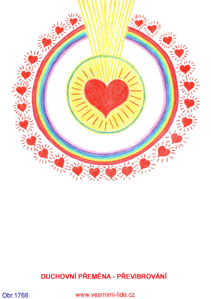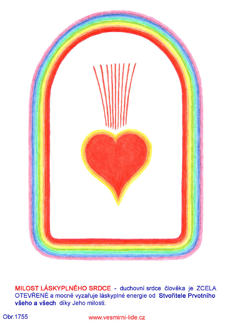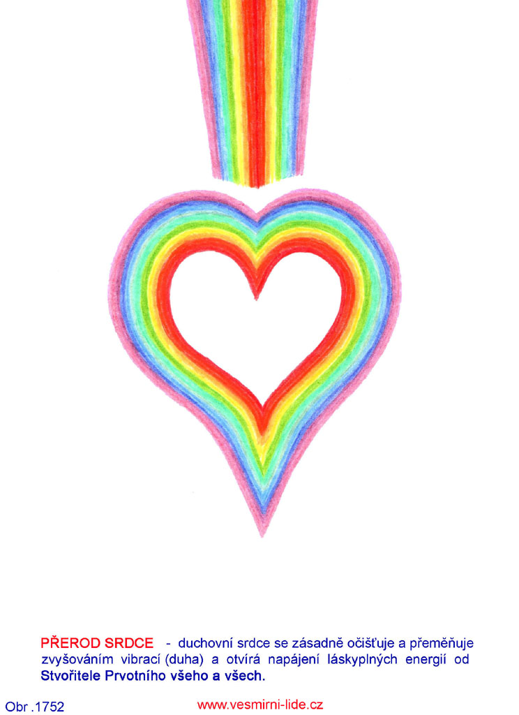 „Zásadní podmínkou vzestupu pro každého člověka v DUCHOVNÍ CESTĚ - sdělení 819 – 847 a obr. 688, 692 je OTVÍRÁNÍ DUCHOVNÍHO SRDCE – srdečnost, láskyplnost, upřímnost, vnímavost (4. srdeční čakra), a uvnitř tohoto procesu je REVOLUCE SRDCE – zásadní přeměna duchovního srdce - odstranění bloků, čištění a vzestup – duha. Zde máte některé další účinné pomůcky k tomuto procesu – obr. 1751 – 1660. Pohledem na ně (10 a více minut) iniciujete otvírání a revoluci svého srdce zaměřením svého vědomí na tuto klíčovou informaci propojovacím procesem.