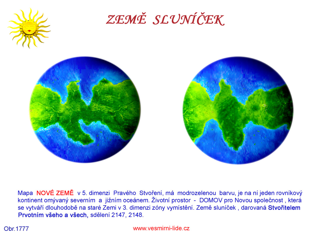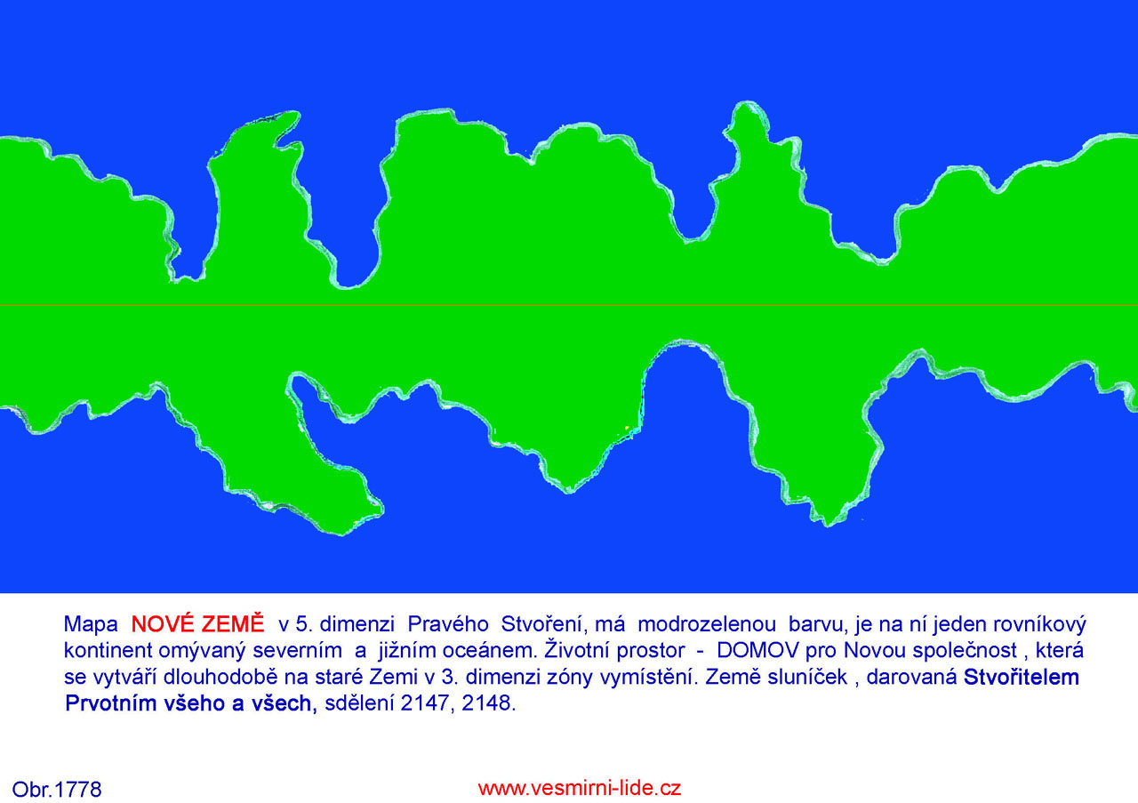 MAPA NOVÉ ZEMĚ v 5. dimenzi Pravého Stvoření (obr. mapa 2 polokoule a rozvinutá mapa).