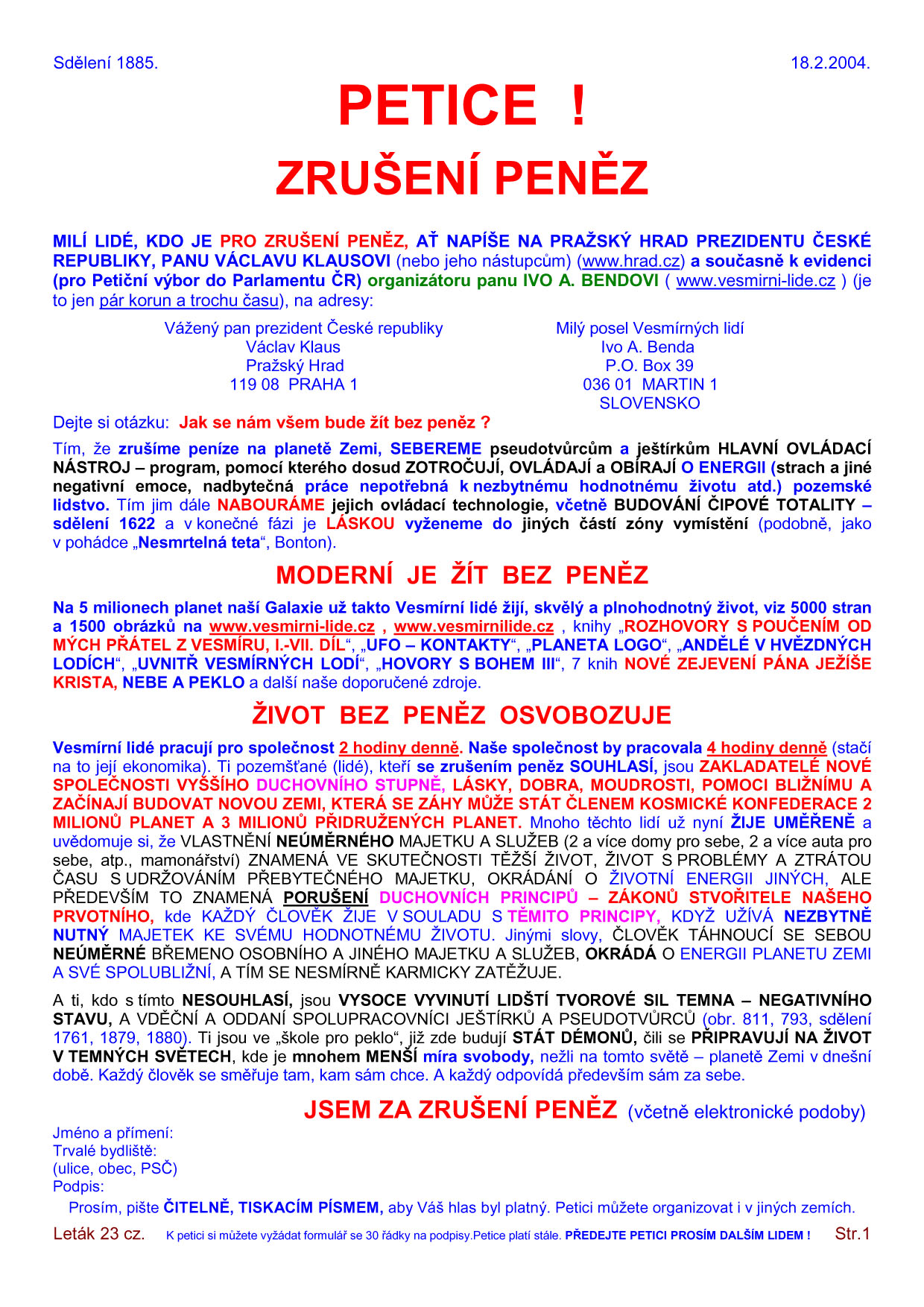 | ZRUŠENÍ PENĚZ - PETICE |