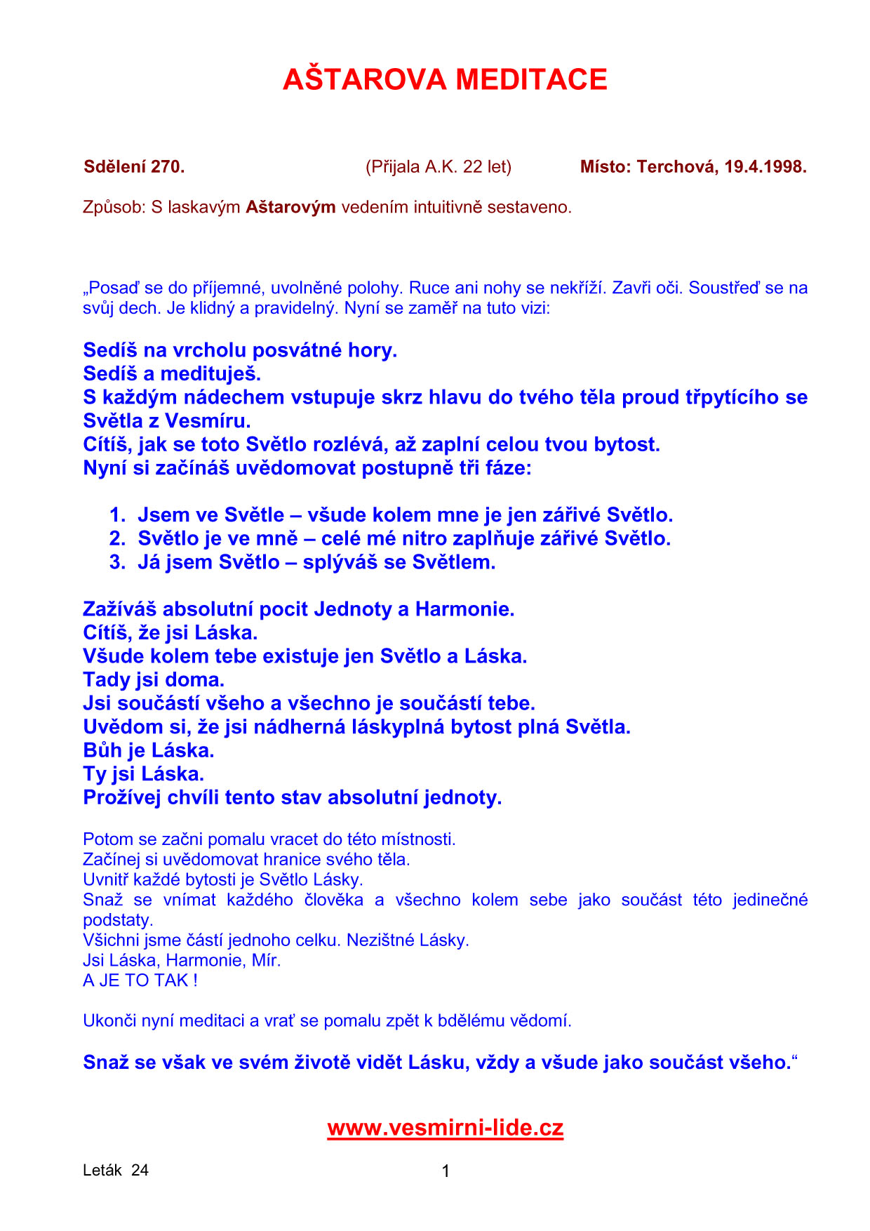 | AŠTAROVA MEDITACE |