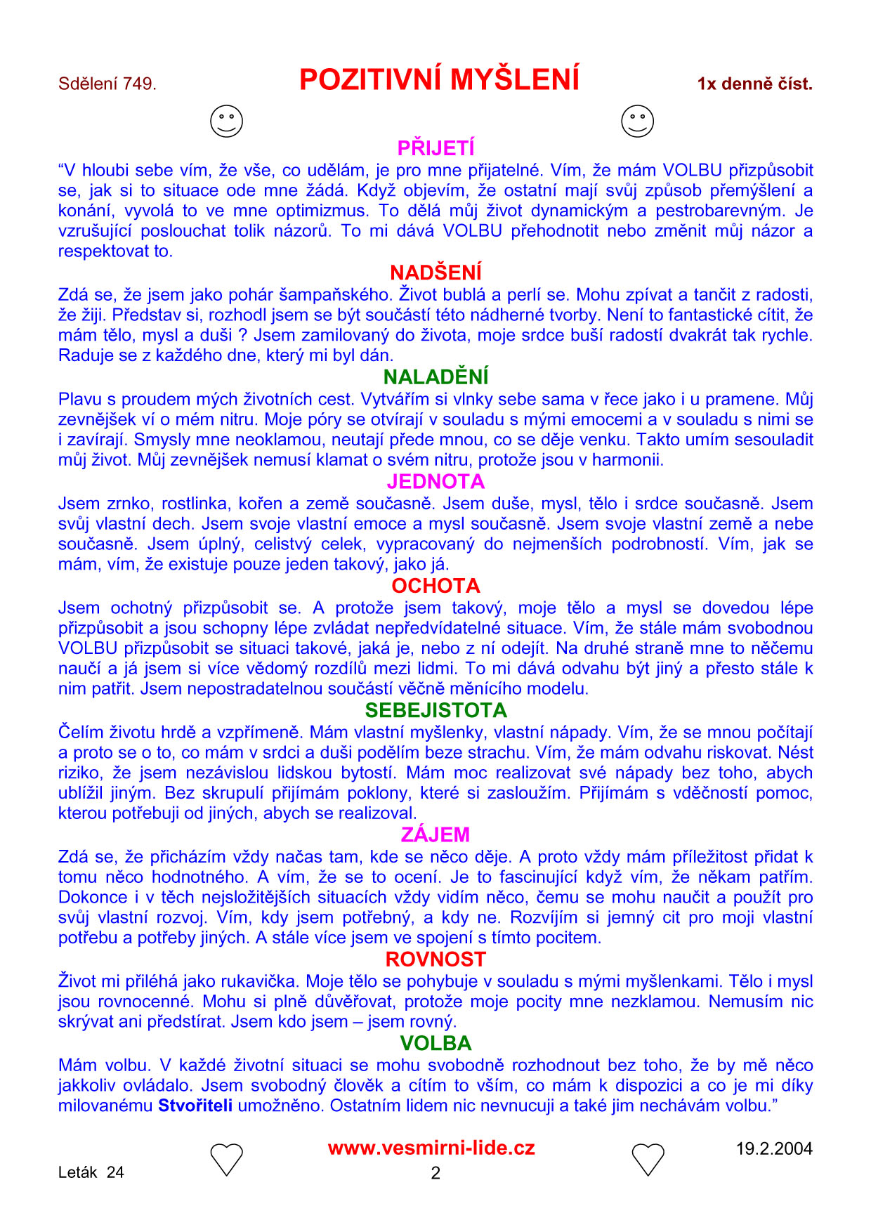 | POZITIVNÍ MYŠLENÍ |