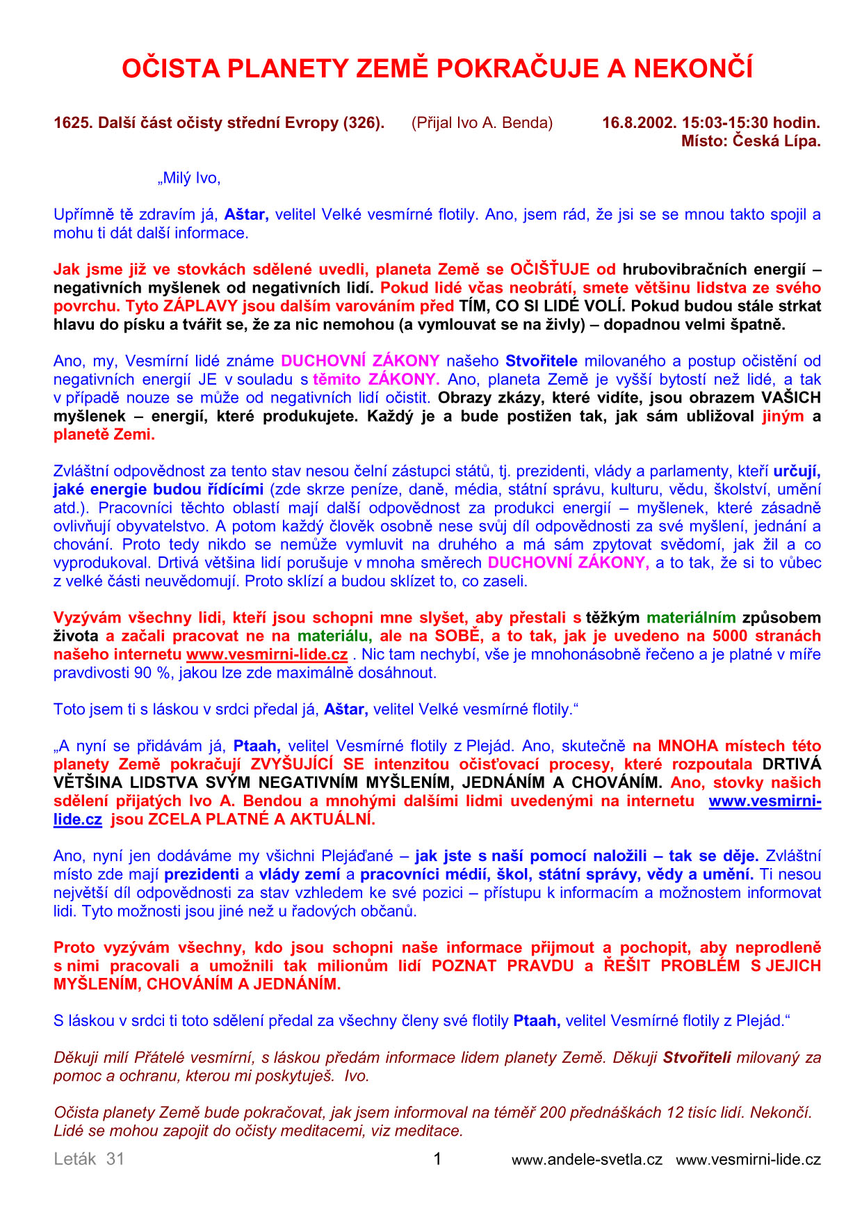 | OČISTA PLANETY ZEMĚ POKRAČUJE A NEKONČÍ |