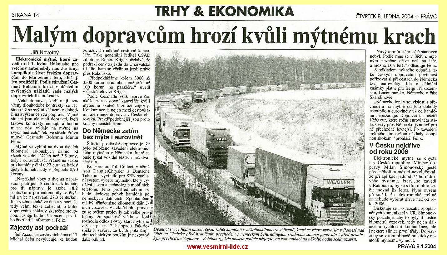 Malým dopravcům hrozí kvůli mýtnému krach (8.1.2004)